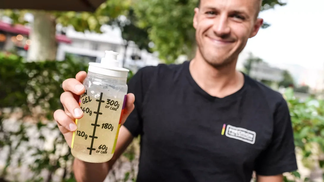Vroeger was het lastig om voldoende gel mee te nemen bij zware inspanningen. Neem 300 gram koolhydraten mee in een waterfles of een zacht bakje. We hebben onze populaire gel opnieuw ontworpen, zodat deze gemakkelijker stroomt, zonder dat er water aan hoeft te worden toegevoegd. Geen probleem, minder afval.